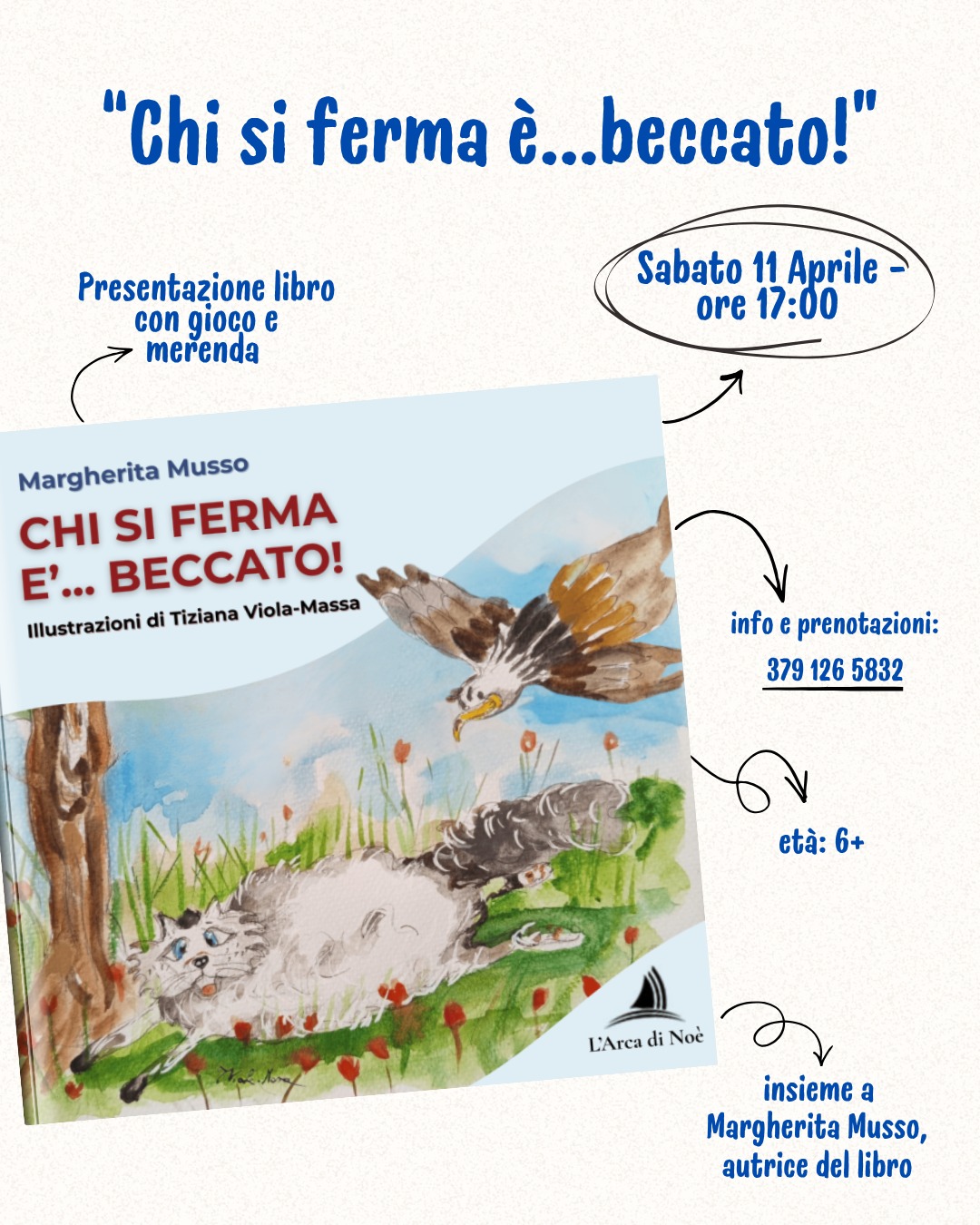 Sabato 11 aprile, alle ore 17, presso la Libreria Cirasa di via Roccaforte 76/78, a Bagheria, in provincia di Palermo, sarà presentato il racconto di Margherita Musso dal titolo “Chi si ferma è… beccato!” (Edizioni L’Arca di Noè, 2026), illustrato da Tiziana Viola-Massa. A poco meno di un anno dall’uscita…